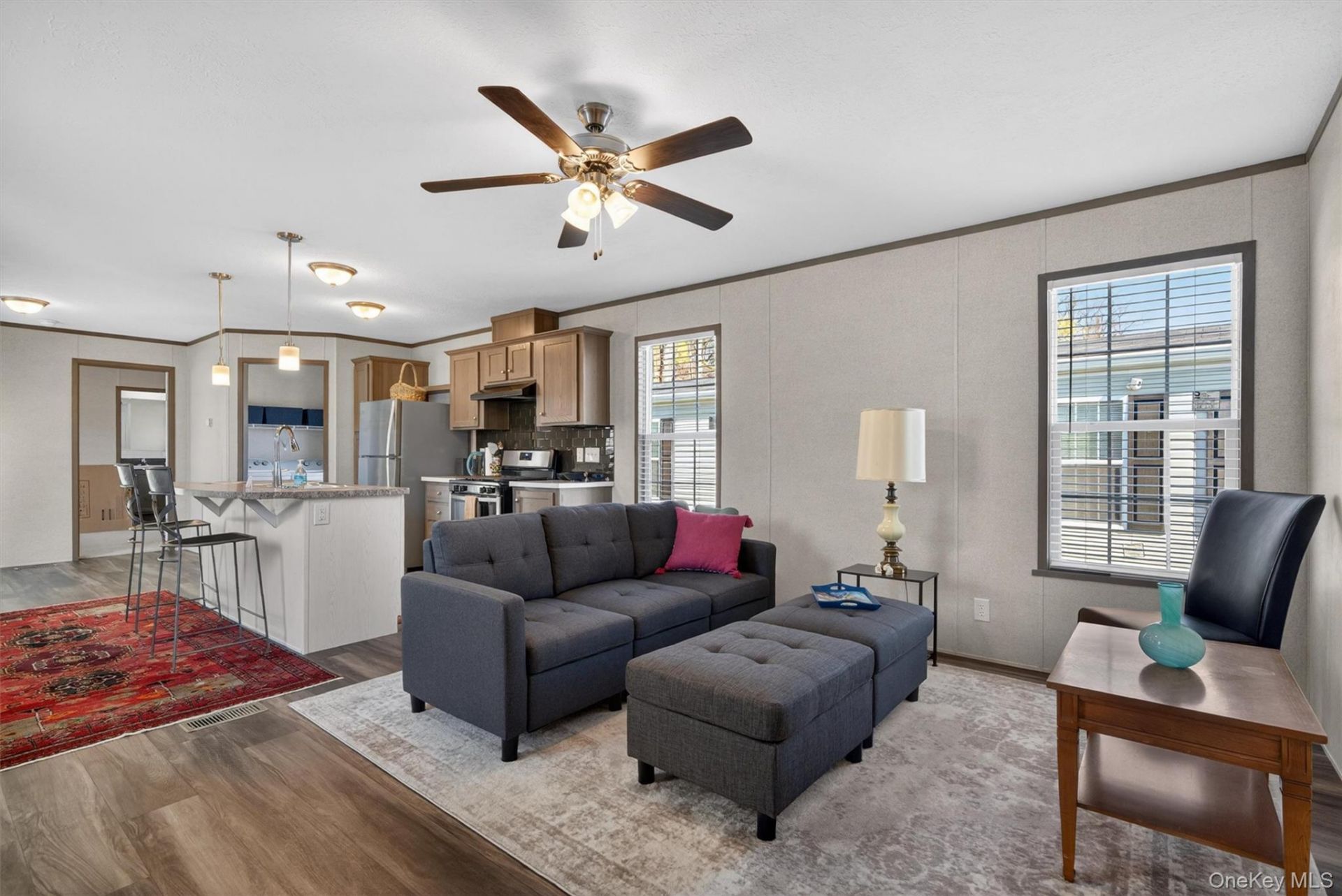 Enjoy affordable, low-maintenance living in this well-kept 3-bedroom, 2-bath home designed for comfort and convenience. The bright living room features multiple windows that fill the space with natural light, creating a warm and inviting atmosphere. It flows seamlessly into a spacious open kitchen with plenty of counter space and cabinetry, ideal for everyday living and entertaining. Both bathrooms are generously sized, offering added comfort and functionality. Additional highlights include central air conditioning and an in-unit washer and dryer, making daily living easy and efficient. Set on a well-maintained lot, the property offers outdoor space for relaxation and parking for two vehicles. As a BaMar resident, you'll gain access to exclusive amenities, including a boat launch, two pavilions, a grill, a playground, and engaging community events, all within easy reach of the town park and water. This is a great opportunity for buyers looking to own a home while leasing the land, providing a more affordable path to homeownership. Park approval is required, including completion of a tenant application.
